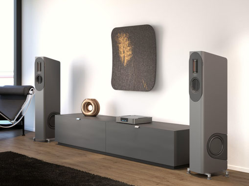 Ein weitere Vorteil dieser Anordnung ist das Design des Lautsprechers. Das Gehäuse kann sehr schlank gebaut werden, was jedem Raumdesign zugute kommt. Zudem werden Vibrationen des Gehäuses durch diese Anordnung drastisch reduziert.