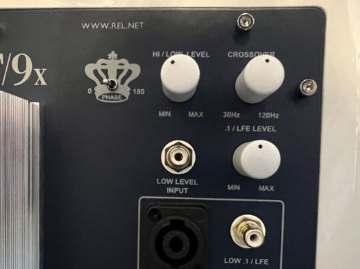 Nebst den Anschlüssen besitzen die Woofer von REL einige Drehregler und Schalter. Mit diesen lässt sich der Subwoofer optimal auf die Gegebenheiten in deinem Hörraum und auf die Lautsprecher anpassen. So stellst du die Grundlautstärke, sowie die Trennfrequenz und Phase ein.