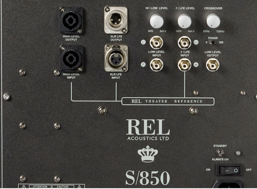 Bei REL gibt es zusätzlich einen "universalen" Anschluss - den High-Level Input (ganz Links). Dank diesem Anschlusstyp kann der Subwoofer direkt mit den Lautsprecheranschlüssen deines Verstärkers verbunden werden - parallel mit den Boxen! Sollte also dein Verstärker weder einen PRE-Out, noch einen Subwoofer Anschluss besitzen, steht der Verwendung eines REL Woofers dennoch nichts im Weg!