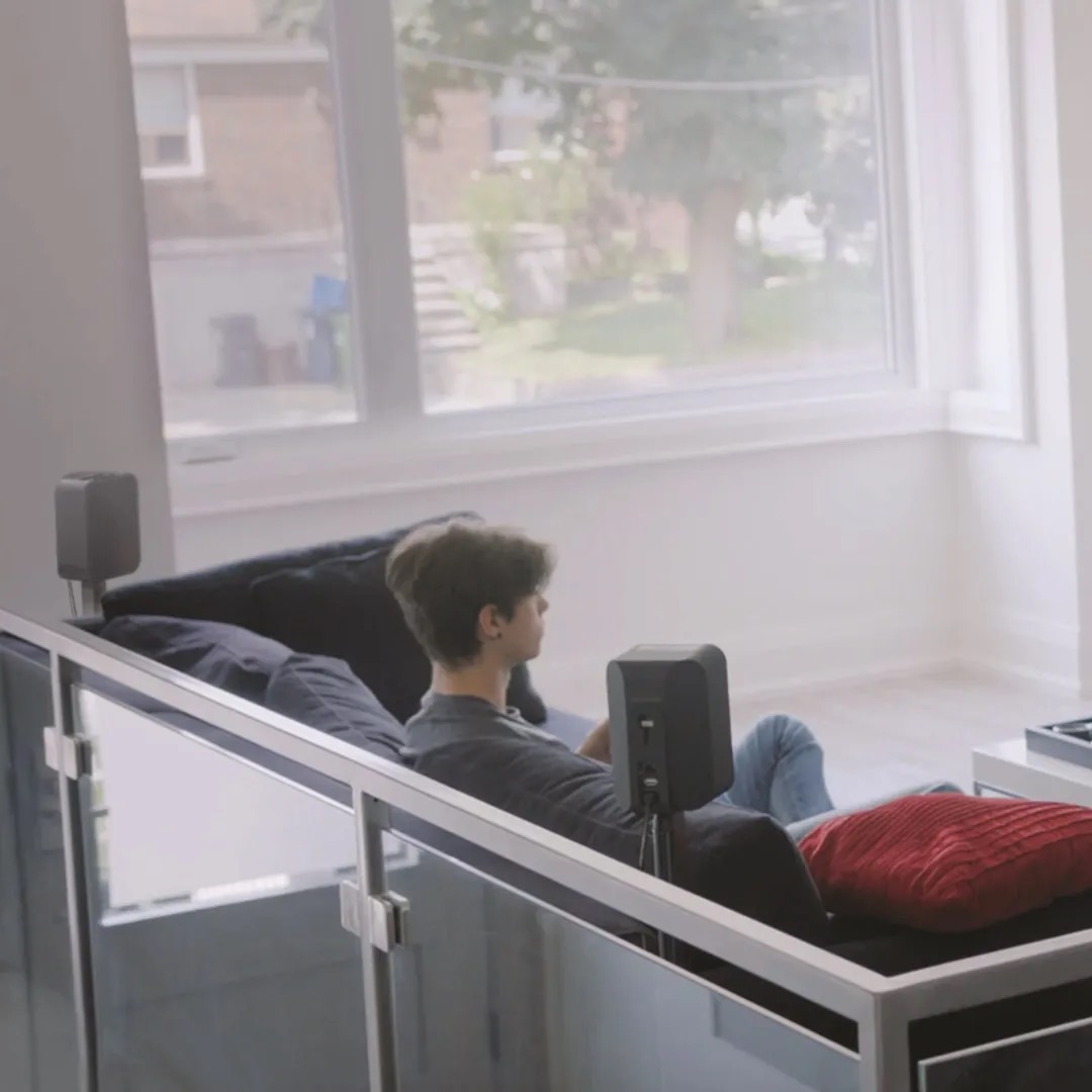 Platziere jeweils einen Speaker links und rechts hinter deiner Sitzposition und los gehts. Die Installation ist genau so einfach wie es sich anhört.
